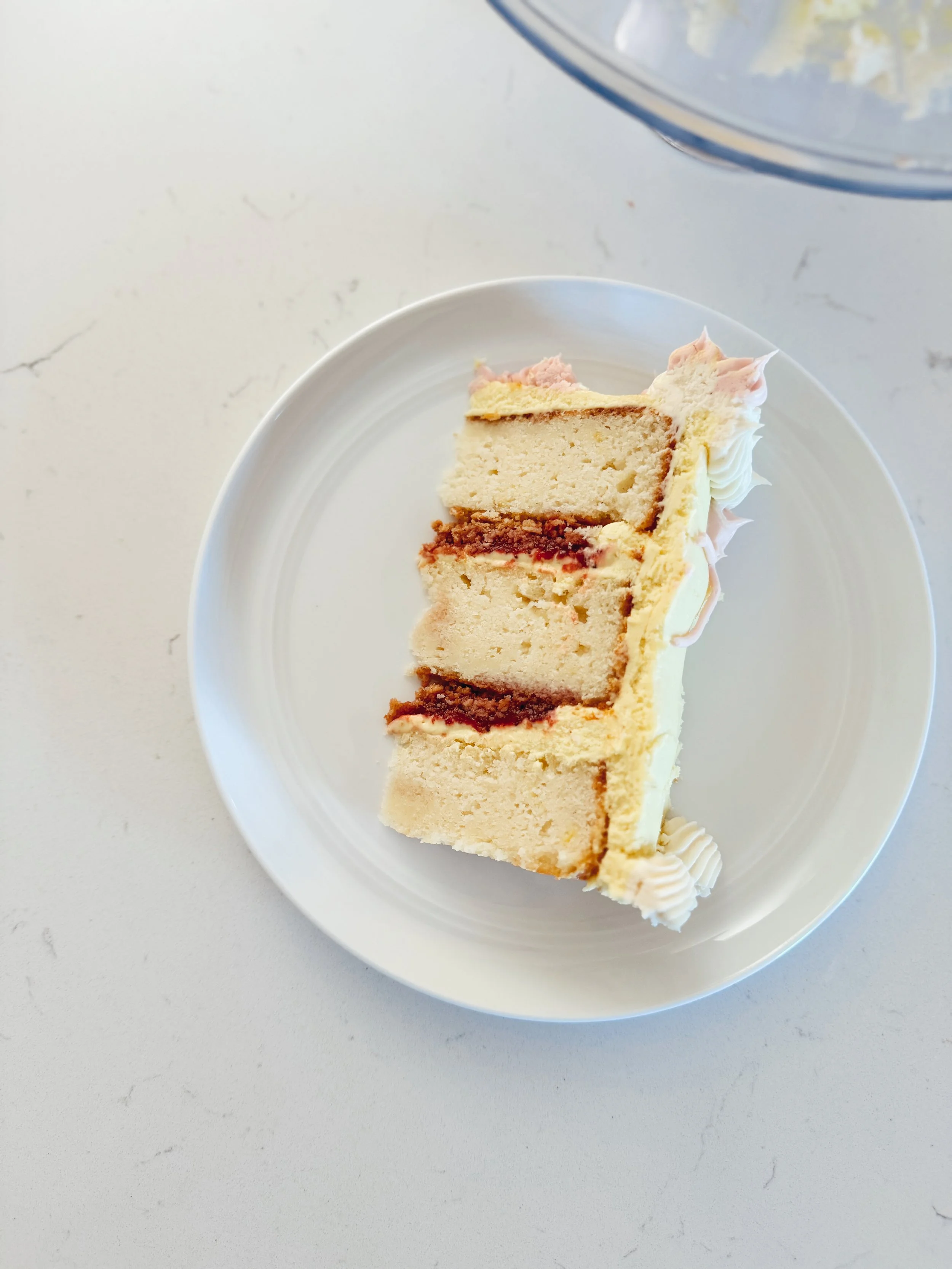 We celebrated 5 years of taproom business, and if there was one thing I was SET on, it was having cake on hand to celebrate. I had a few lemon cake layers frozen & ready to roll, so I brought them out of a retirement for a sweet treat Jordan + I could enjoy after our shift. I whipped up a quick strawberry-raspberry jam + a graham cracker crunch to sandwich in between the layers, and this Lemon Cream Cheese Buttercream to tie everything together. & it was so good! A novel concept really - juice a whole lemon and add it to the cream cheese buttercream frosting I always use, and there it is. It was sweet, but the lemon cuts the sugar just enough for it be this zippy little buttercream. Loved it, Could eat spoonfuls of it. Thrilled to have it as the icing on the cake!