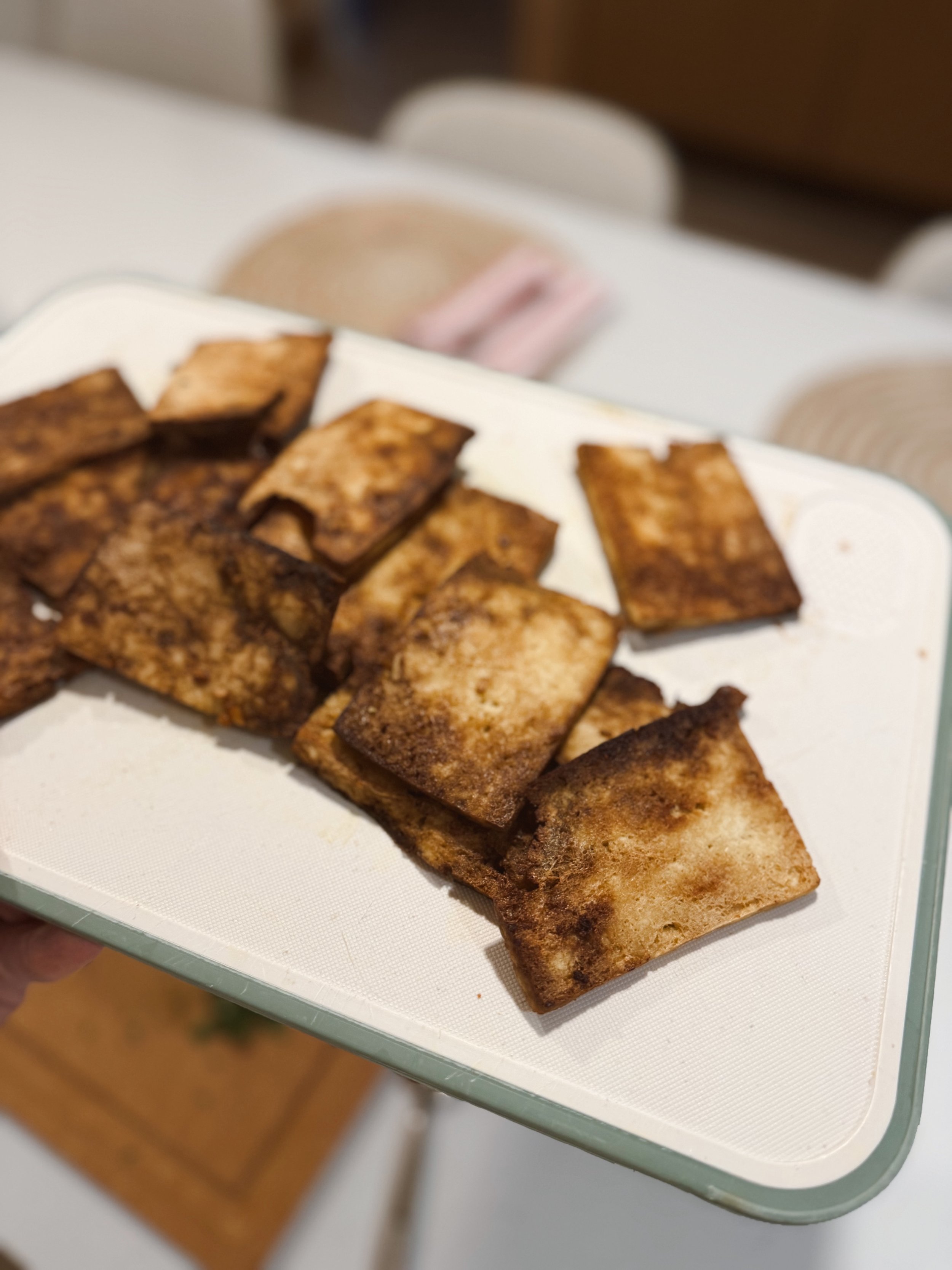 1 block of extra firm tofu, pressed + cut into “slabs”