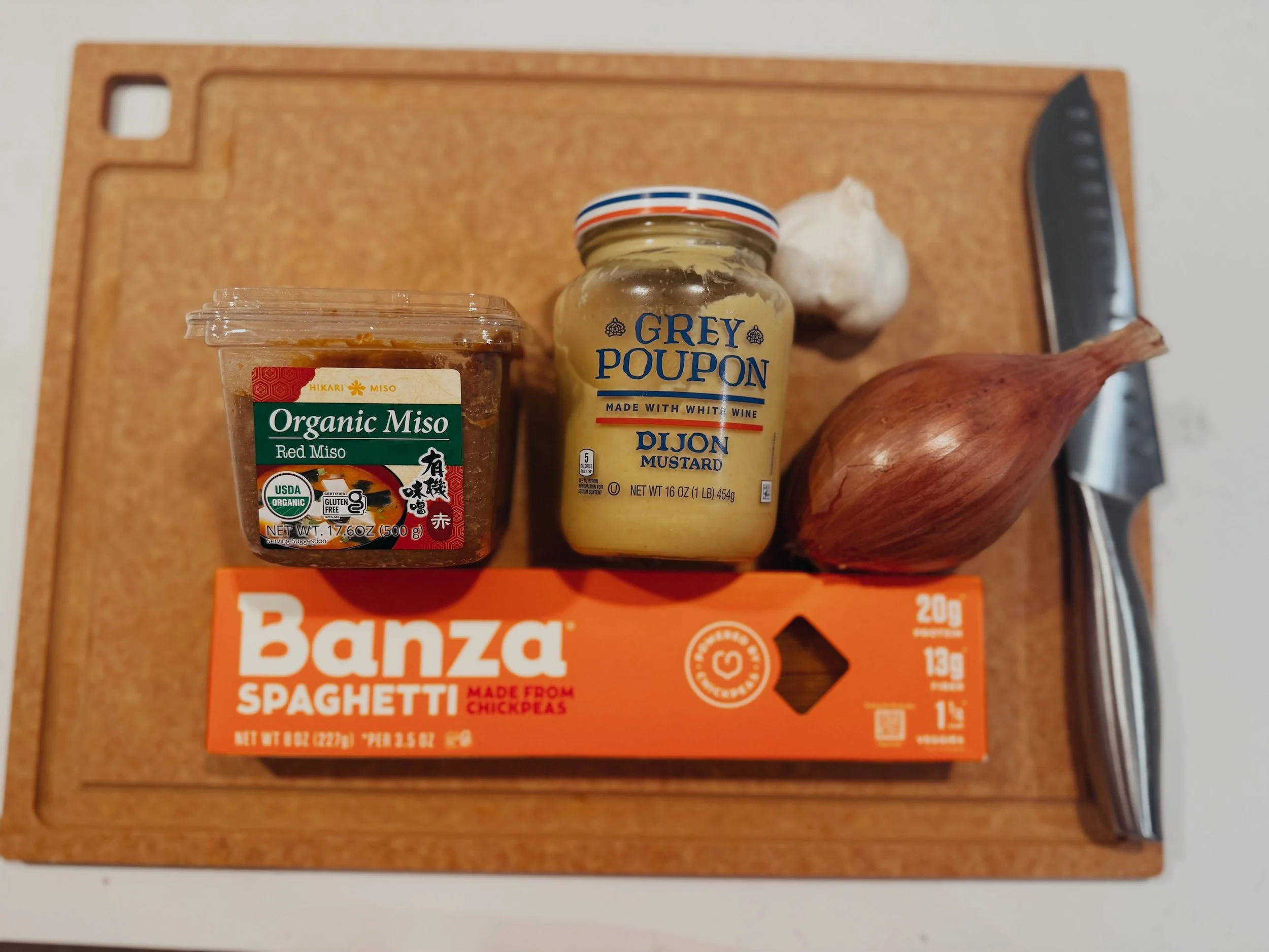 I swear - it’s the signature miso flavor that shines in this pasta. It’s present + you can taste it in every bite, but slightly mellowed out with the cheese + cream. Point being that when you put it all together, it’s salty, balanced, and nothing short of addicting! The mustard is like back-up to the miso - adds some tang and a poppy acidity. Also, it’s delicious! But man it’s that miso that really hits!
