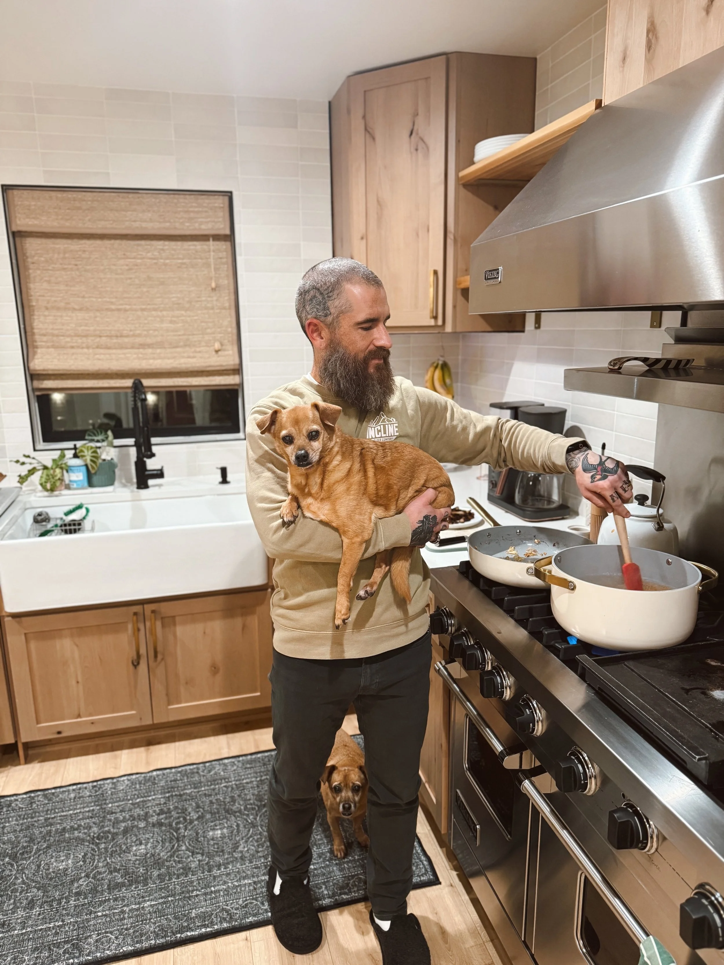 Side-note: our dogs were extra needy on this night, which made for a full family affair in the kitchen.